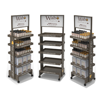 منصة عرض من خشب الصنوبر مخصصة من البوب ، عرض متجر خشبي للبيع بالتجزئة لتسويق العلامات التجارية